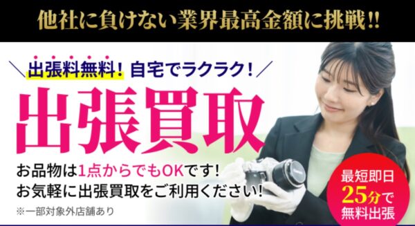 出張買取なら、最短即日25分で無料出張、現金で買い取りしてくれるから楽ちんです。