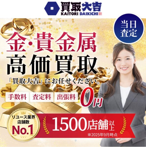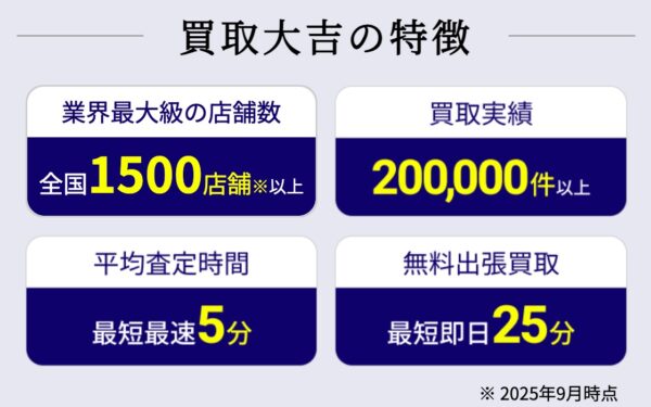 買取大吉は全国1500店舗以上に展開している業界最大級の買取専門店です。
