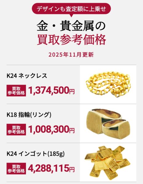 金相場高騰中なので驚くほどの買取価格をご提示してもらえることも!