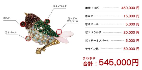 通常は宝飾品のデザインは査定に含まれませんが、「まねきや」なら専門の鑑定スペシャリストがデザインも査定額に上乗せして高価買取してくれます。