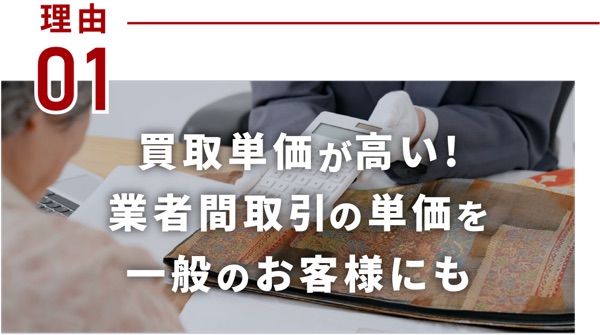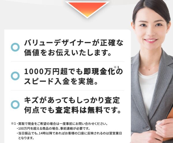 買取事業26年の歴史×世界1,700店舗以上の圧倒的な買取規模だから、他社よりも高く買取してもらえるのが特徴的。