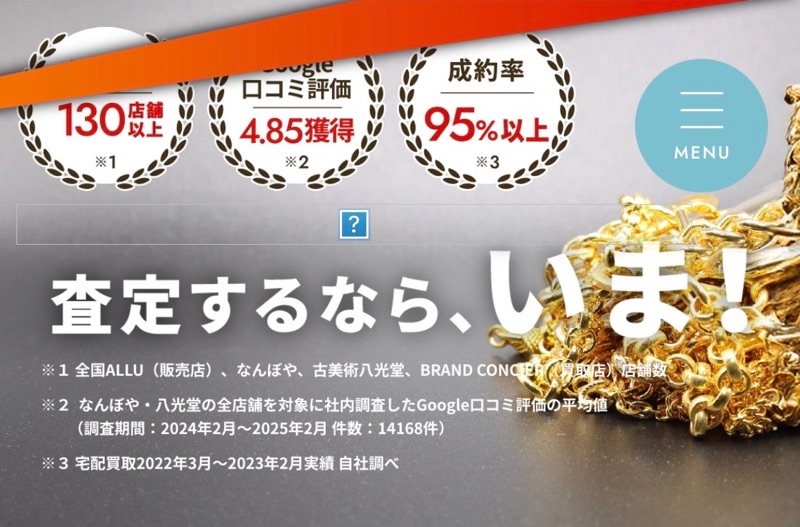 「なんぼや」は、東証グロース市場に上場するバリュエンスホールディングスのグループ企業が運営する金買取専門店です。