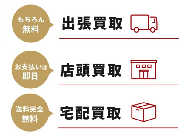 買取方法は店舗買取・出張買取・宅配買取に対応!